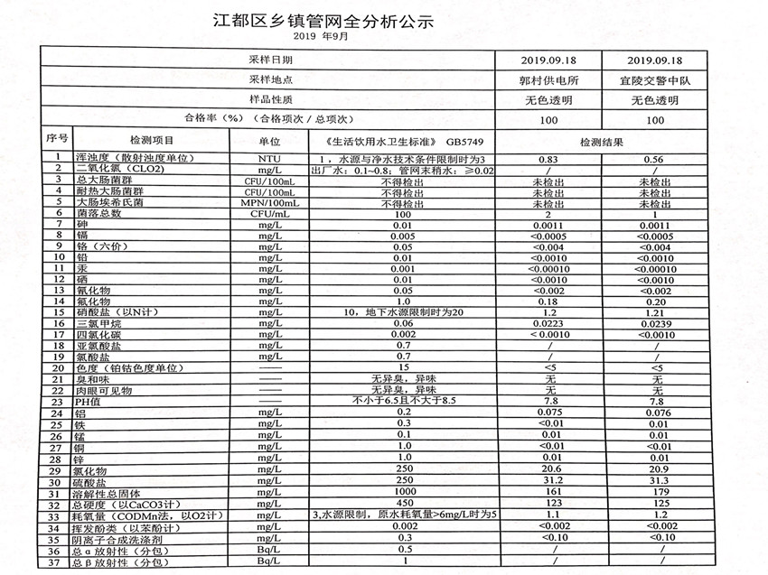 水質(zhì)公示