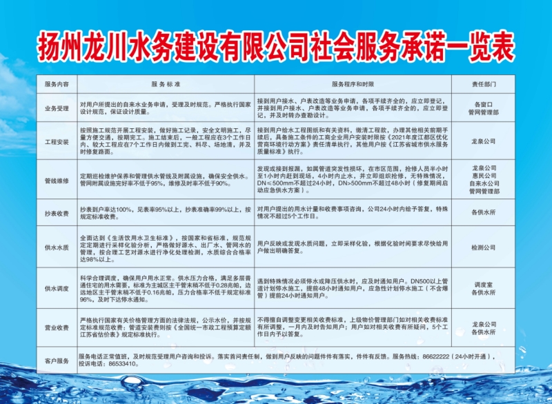 揚(yáng)州龍川控股水務(wù)建設(shè)有限公司社會(huì)服務(wù)承諾