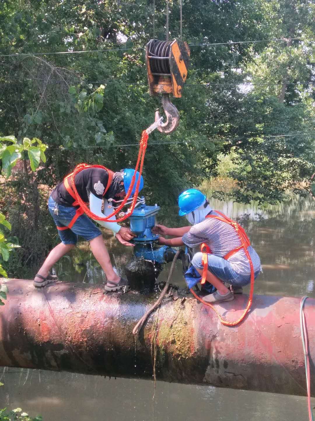 圖為:烈日下,供水一線的安裝維修工人為仙女鎮(zhèn)航空路與江平路的交叉口DN150管道更換排氣閥,確保夏季高峰期的安全優(yōu)質(zhì)供水。
