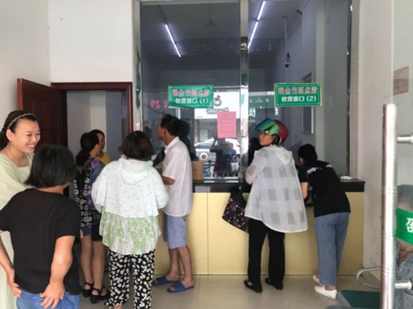 圖為該所用水戶繳費領卡工作現(xiàn)場