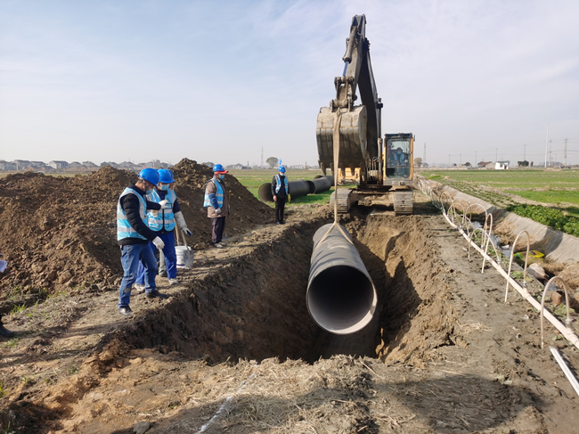 該工程項目契合《揚州市江都區給水工程專項規劃》(2018-2035),列入江都區城市建設和環境提升重點工程,工程起點位于宜大路與336省道交叉口處預留的DN1200管道接口,終點位于郭村增壓站,全長23.39公里,采用管徑DN1000球墨鑄鐵管,輸水規模達到8.5萬m³/d,項目總投資18228萬元,預計2023年3月竣工。本次先導段施工長度為750米。