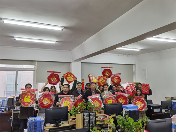 同時,當天下午,由龍川水務公司總經理王智勇同志、公司工會領域的負責同志以及相關工作人員組成的新春走基層特別慰問小組,向各部門、子公司相關行政辦公室贈送了精心準備的“福”字和虎年相關的掛件禮物,并向他們致以新年的祝福和問候。通過這一活動,既能增強員工凝聚力和歸屬感,也為我們廣大的水務員工較好地展現了中國傳統節日的風俗習慣和文化內涵。