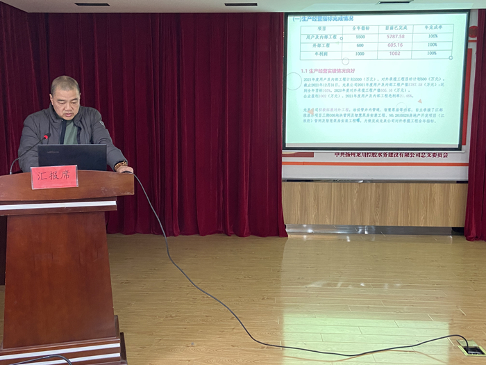 在本次大會匯報交流環(huán)節(jié),分別聽取了計劃財務(wù)部、運營技術(shù)部、黨群工作部、自來水公司、惠民區(qū)域供水公司、龍泉建設(shè)工程公司、龍川污水處理公司等七個部門單位2021年工作總結(jié)報告。各部門、子公司負責人分別圍繞2021年全年生產(chǎn)經(jīng)營指標、重點工作完成情況、存在的主要問題、解決對策以及2022年工作計劃作了交流匯報。