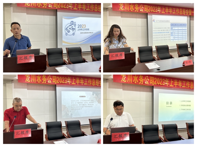會(huì)議分別聽取了計(jì)劃財(cái)務(wù)部、運(yùn)營(yíng)技術(shù)部、客戶服務(wù)部、自來(lái)水公司、惠民區(qū)域供水公司、龍泉建設(shè)工程公司、龍川污水處理公司等七個(gè)部門單位2023年上半年工作總結(jié)報(bào)告。上述各部門、子公司負(fù)責(zé)人分別圍繞上半年生產(chǎn)經(jīng)營(yíng)指標(biāo)、重點(diǎn)工作完成情況、存在的主要問題、解決對(duì)策及下半年工作計(jì)劃作了匯報(bào)交流。
