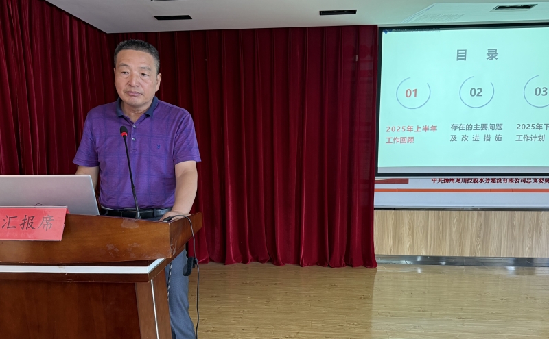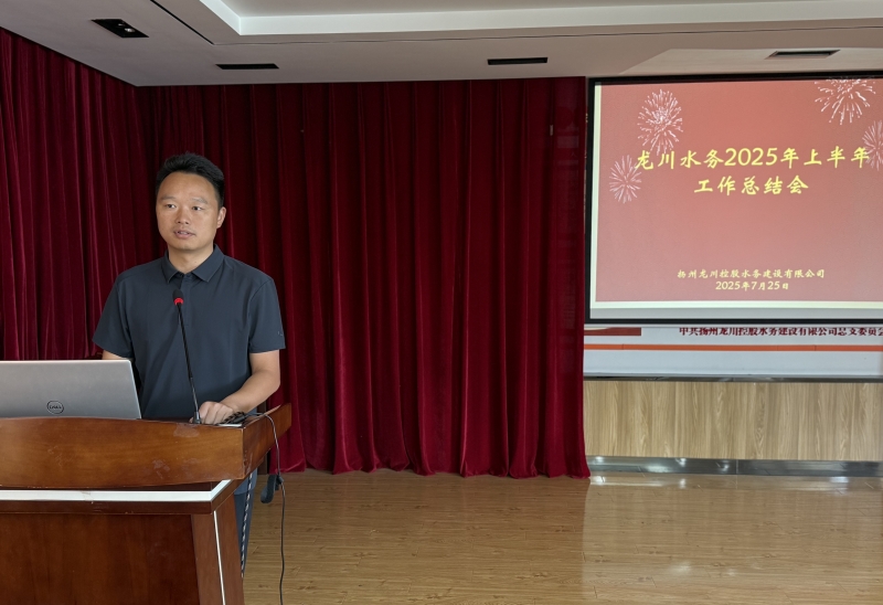 7月25日上午,揚州龍川水務召開2025年上半年工作總結會,公司董事長胡偉偉、總經理李忠國等全體班子成員、公司各部門及各下屬子公司中層副職以上管理人員共計70余人參會,會議由副總經理王昌明同志主持。