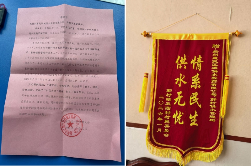 一面錦旗,一封感謝信,既是榮譽,更是責任。惠民區域供水公司負責人蔣珀表示,將以此次群眾贊譽作為新的起點,持續聚焦民生需求,扎實推進供水基礎設施建設,讓優質供水服務惠及更多群眾,以實干書寫更優民生答卷。